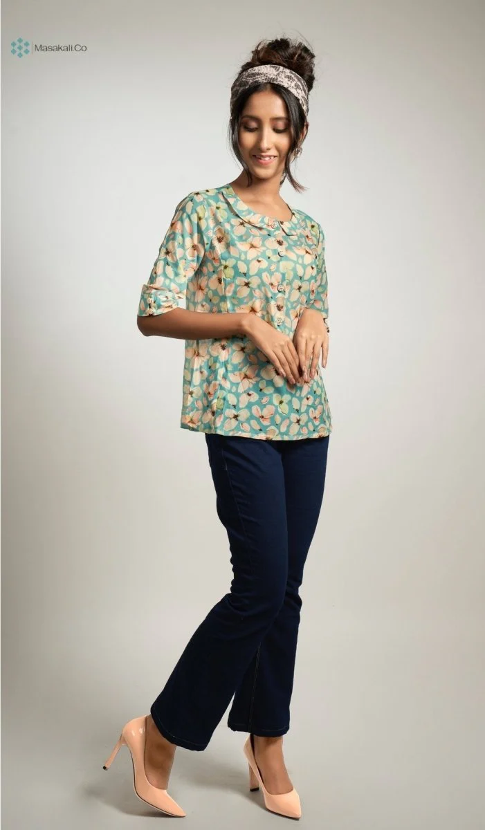 Sky Blue Flower Top