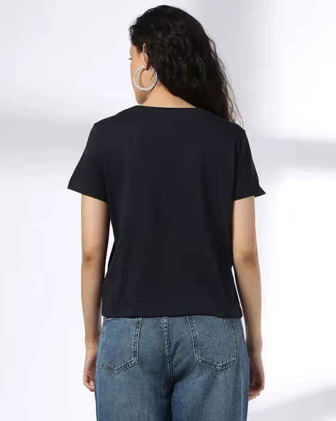 Women Embroidered Regular Fit Crew-Neck T-Shirt