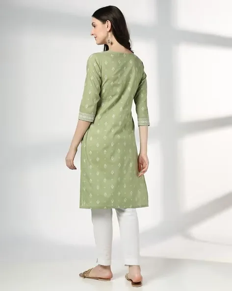Women Paisley Print Straight Kurta with Neck Tie-Up