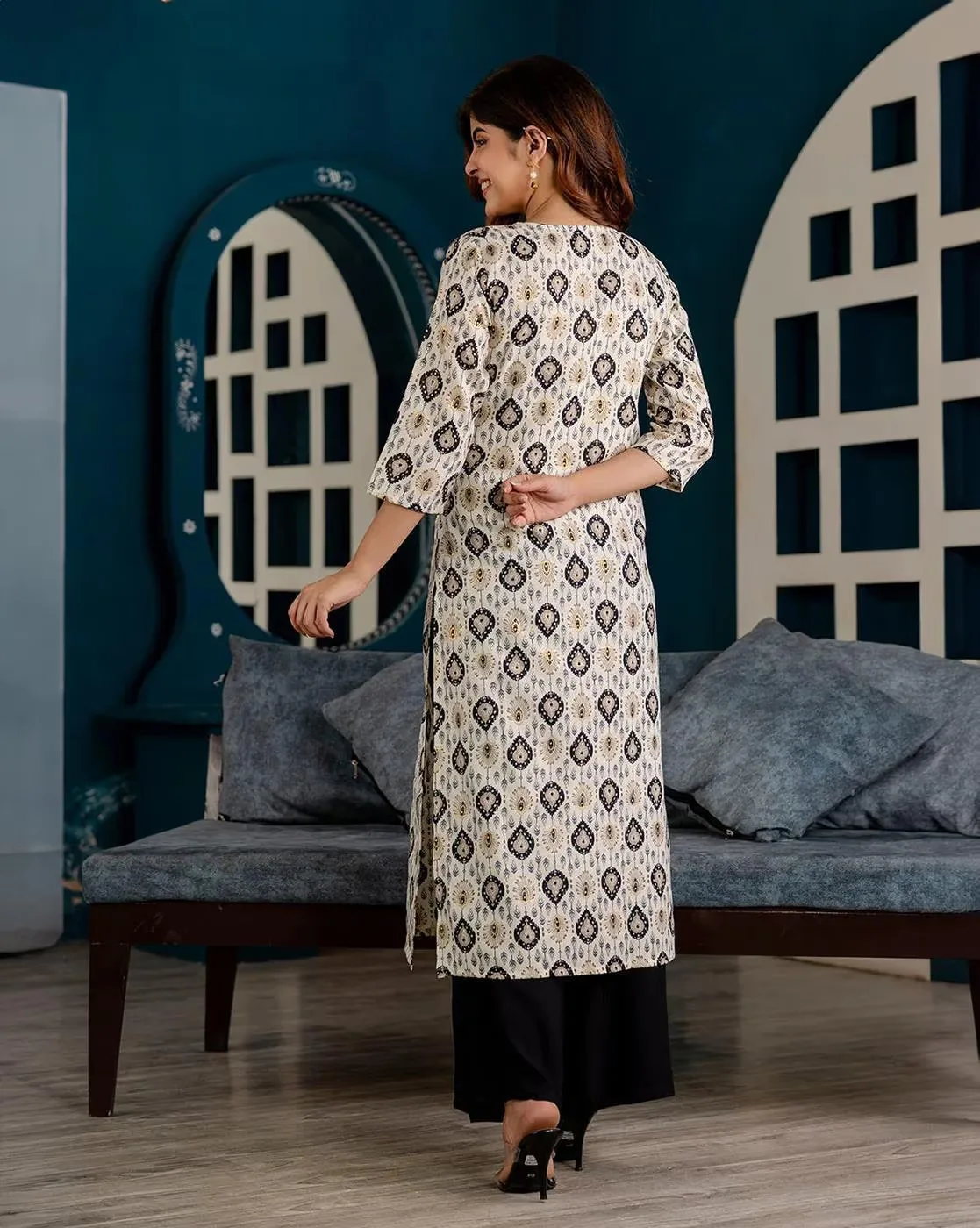 Women Geometric Print Cotton Straight Kurta